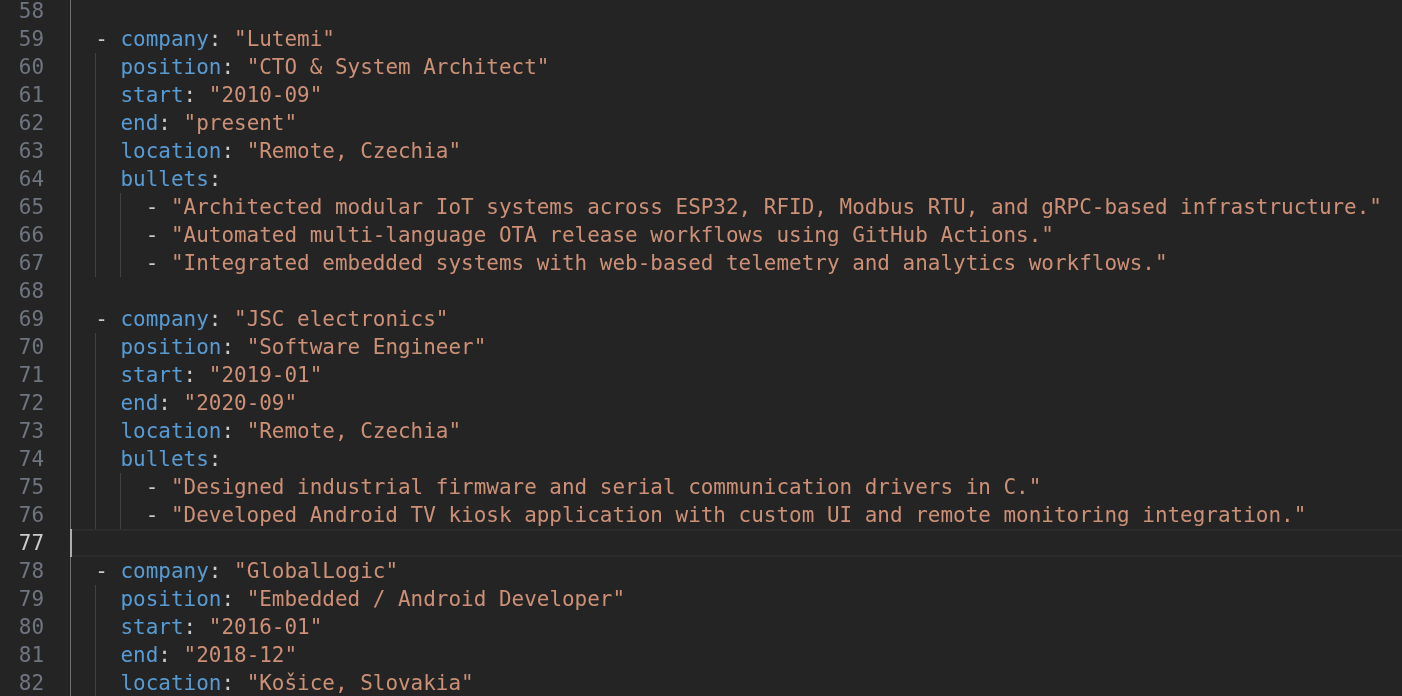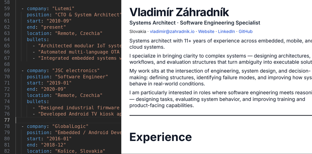 - CVs stored as YAML files